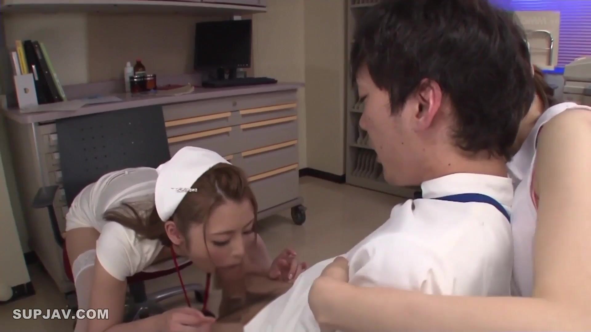 Japanese Nurses Caught the Doctor and Played with His Cock BJ FFM