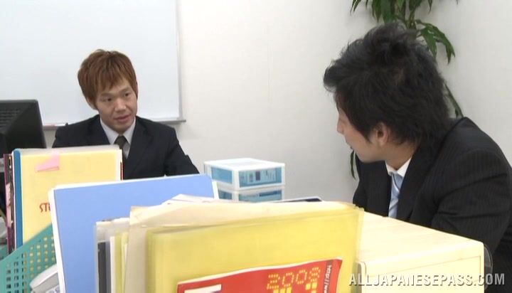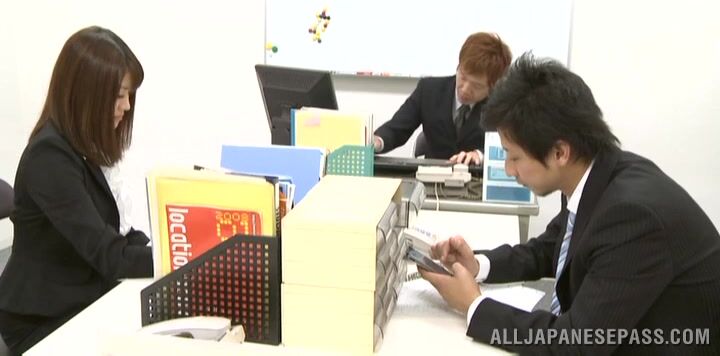 解説: Naughty Japanese office babe likes having her tight vag drilled in amazing fuck session at work along hunks with large dicks. Kinky Japanese model Maki Kouta loves feeling them drilling deep down her tight holes and naughty mouth. She is the most popular chick in the office!