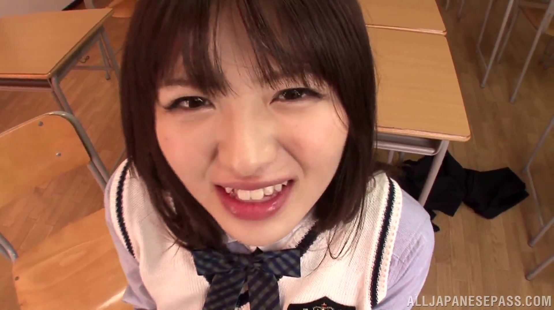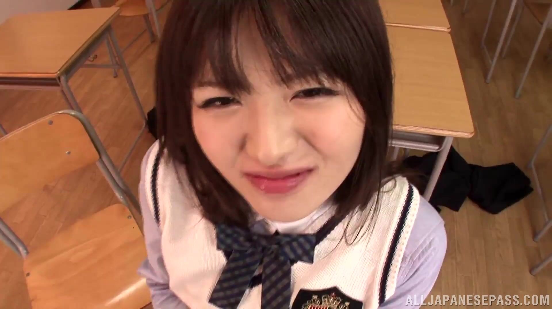 解説: Alluring Japanese schoolgirl Akane Azusa looks so arousing in her sporty costume. She stays in a class with her horny classmate and a male teacher, and the horny dudes her amazing curvy body and arrange a cute sex game, squeezing her juicy tits and giving her pussy hot banging in different kinky positions