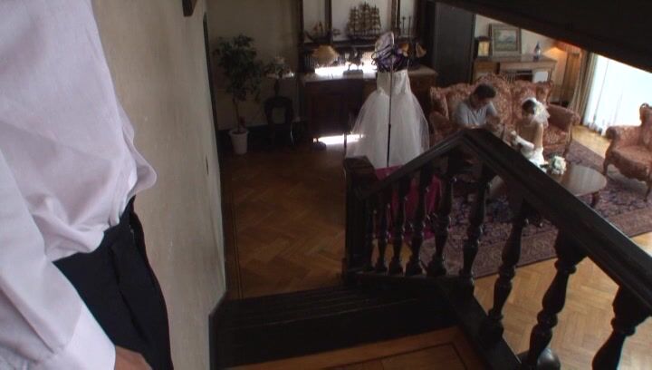Japanese hottie in a wedding dress Arisa Niina deepthroats a cameraman