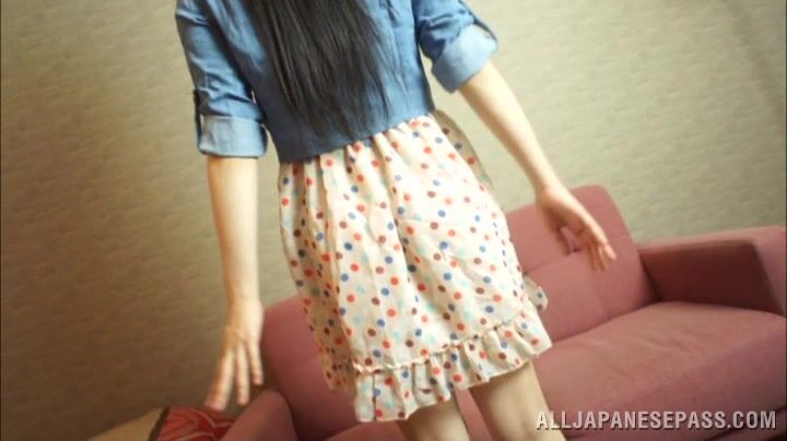 解説: Hot Japanese solo girl Marin Aono strips in front of a cam, revealing her amazing milky body with juicy boobs. She looks really gorgeous and arousing. Getting hot, she starts to stimulate her pussy lips and to fondle her clit, and then she takes a big dildo toy and arranges hardcore pussy vibration.