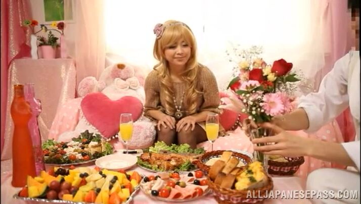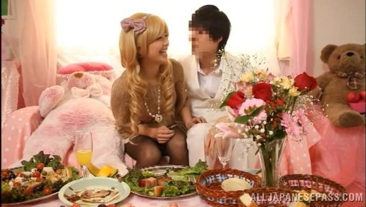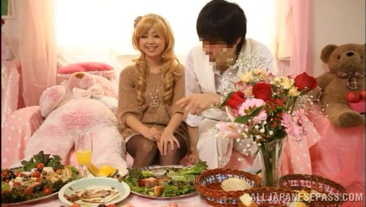 解説: Blonde Japanese teen sweetie with long hair gets seduced and teased by her horny lover. He is really entranced and fascinated by her beauty and he starts to undress her and to finger her adorable pink slit. He takes out his thick impressive dick and she starts to deepthroat him and really enjoys swallowing.